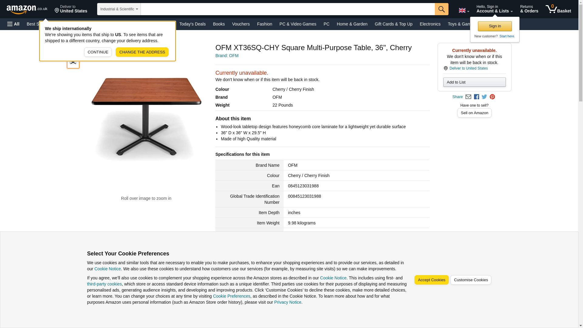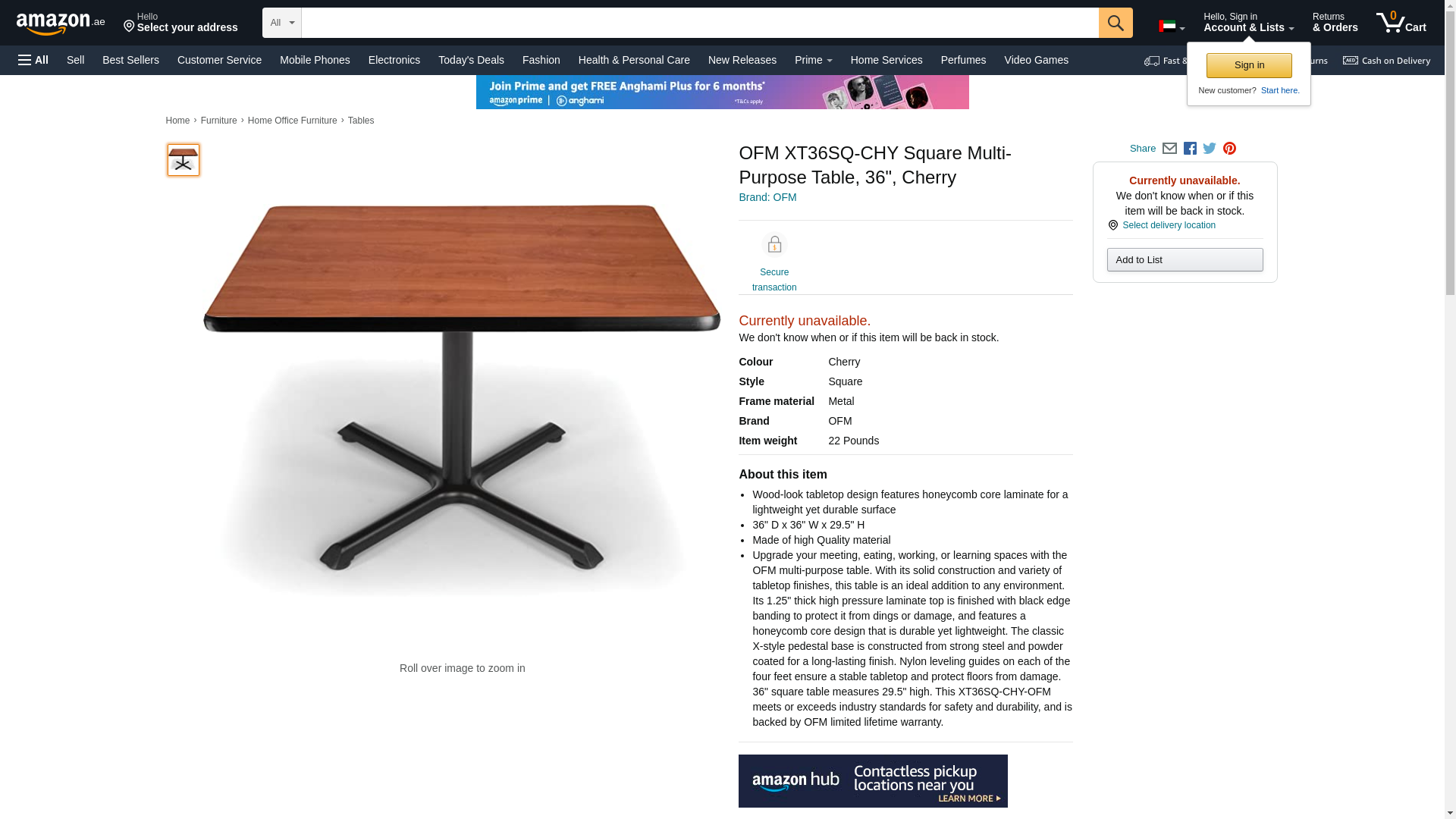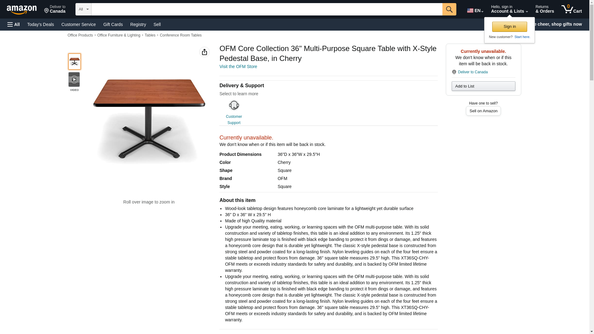 OFM XT36SQ-CHY Square Multi-Purpose Table, 36", Cherry