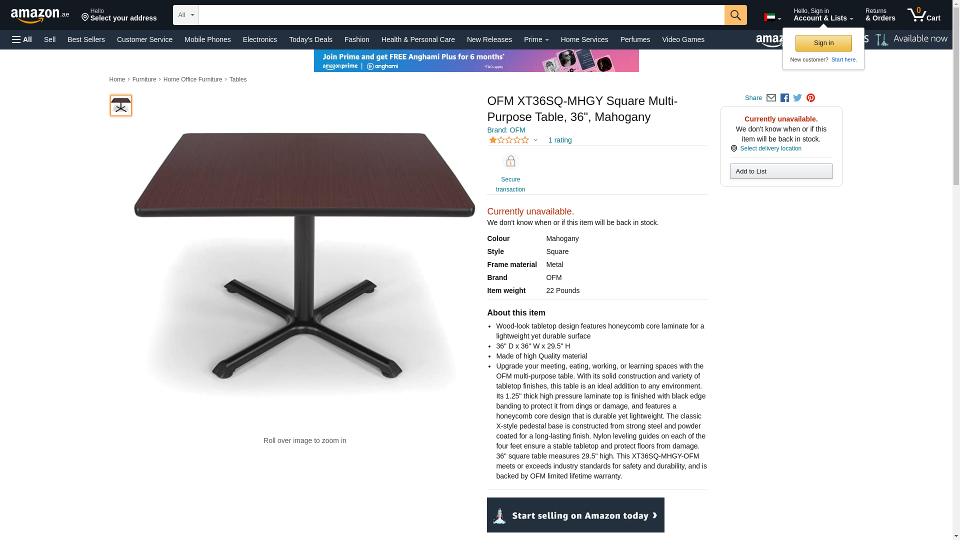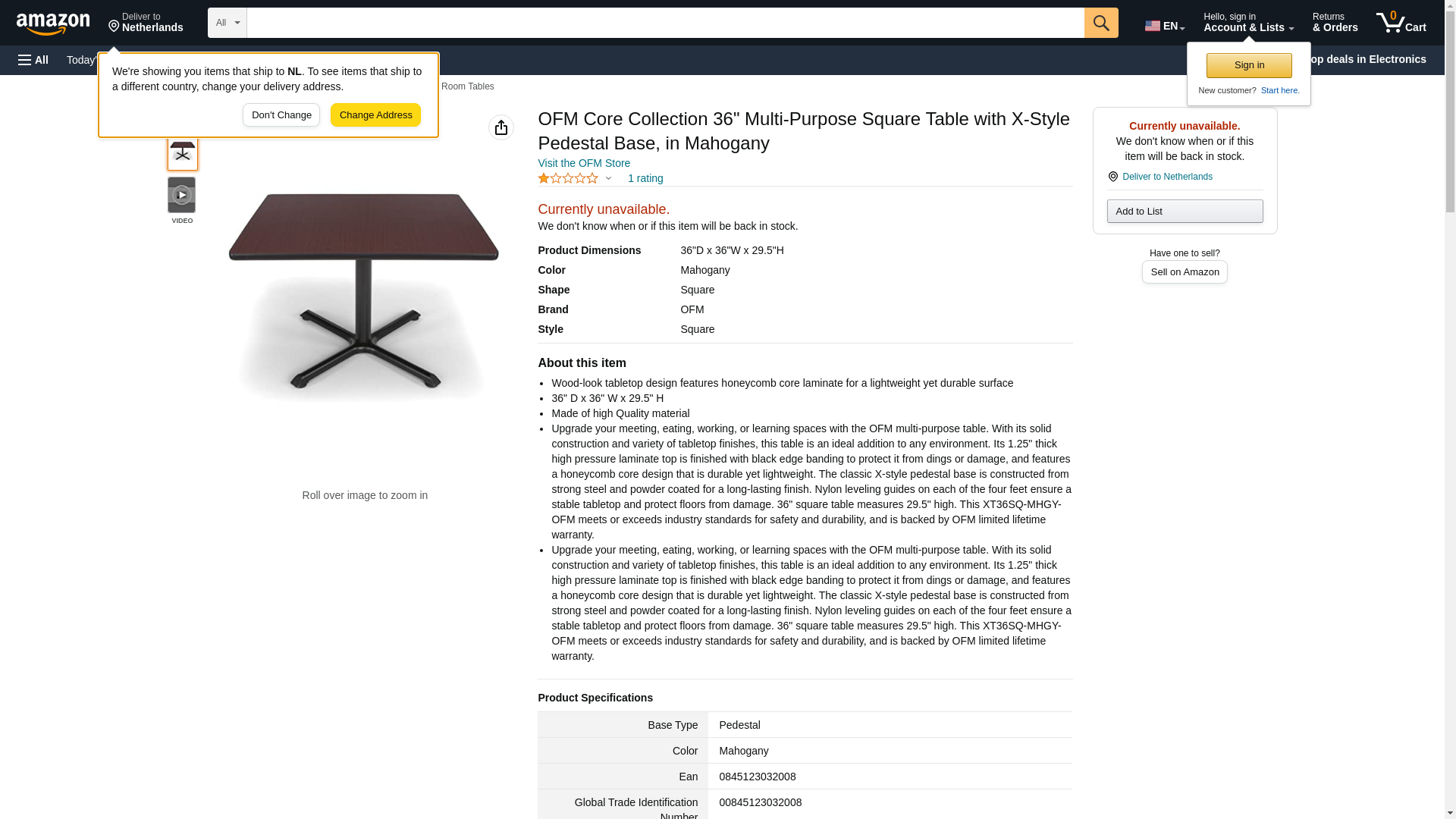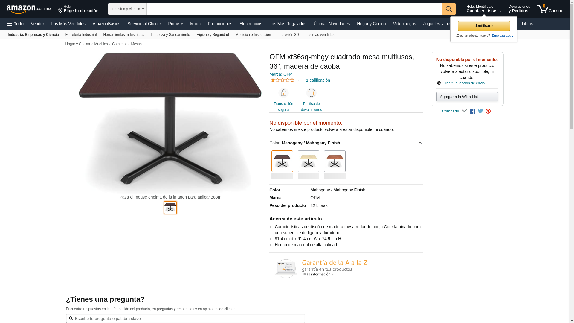 OFM XT36SQ-MHGY Square Multi-Purpose Table, 36", Mahogany