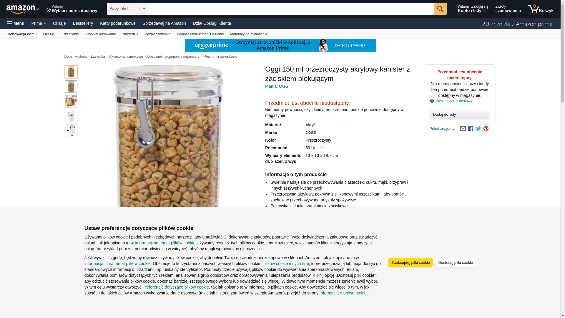 Oggi 59-Ounce Clear Acrylic Canister with Locking Clamp