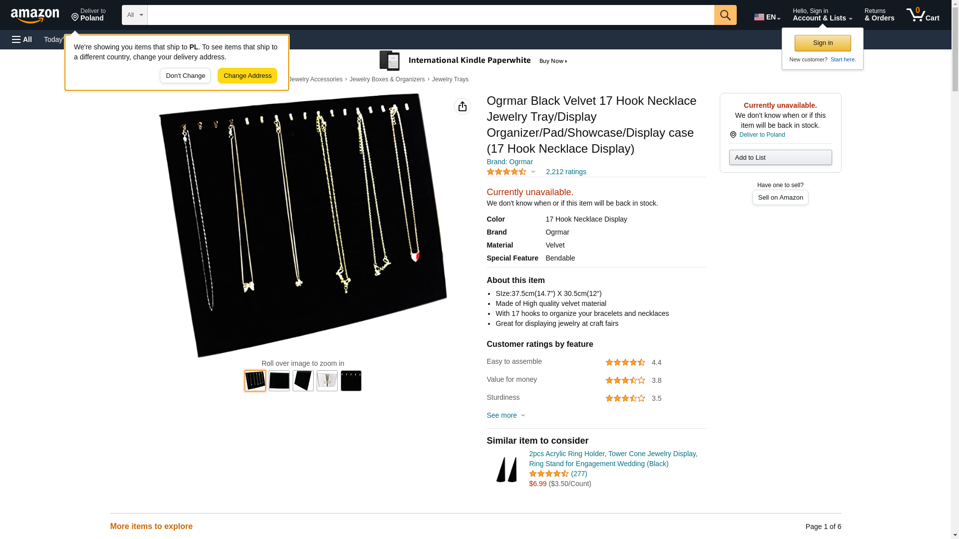 Ogrmar Black Velvet 17 Hook Necklace Jewelry Tray/Display Organizer/Pad/Showcase/Display case (17 Hook Necklace Display): Maxedbuy.com