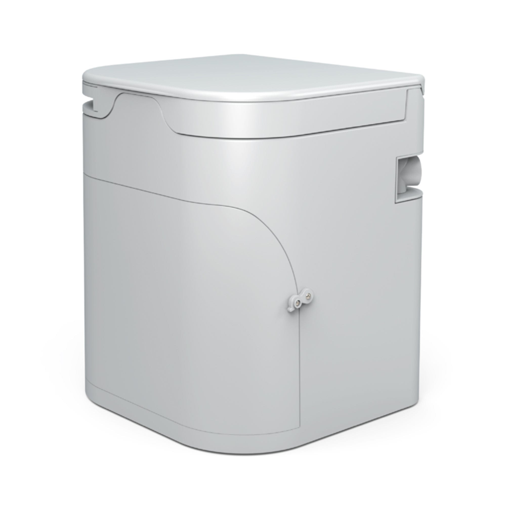 This is the OGO Composting Toilet which is designed to easily separate liquid and solid waste while stopping odors. Made by hand in the USA, this composting toilet is one-of-a-kind. It is the smallest product on the market, plus, it