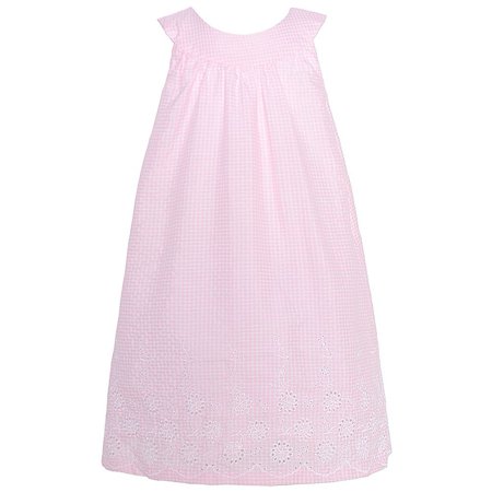 <ul> <li>Pink eyelet trim sleeveless dress from designer Mia Juliana</li> <li>Yoke neckline, checker pattern allover</li> <li>Back zipper closure makes dressing easy</li> <li>Material: 65%Polyester, 35%Cotton, Lining, Netting 100% Polyester, Exclusive of decoration. Care Instructions: Turn inside out machine wash cold with like colors, gentle cycle only non-chlorine bleach when needed tumble dry, remove promptly iron on lowest</li> <li>Sizing is based on U.S. clothing size standards</li> </ul>