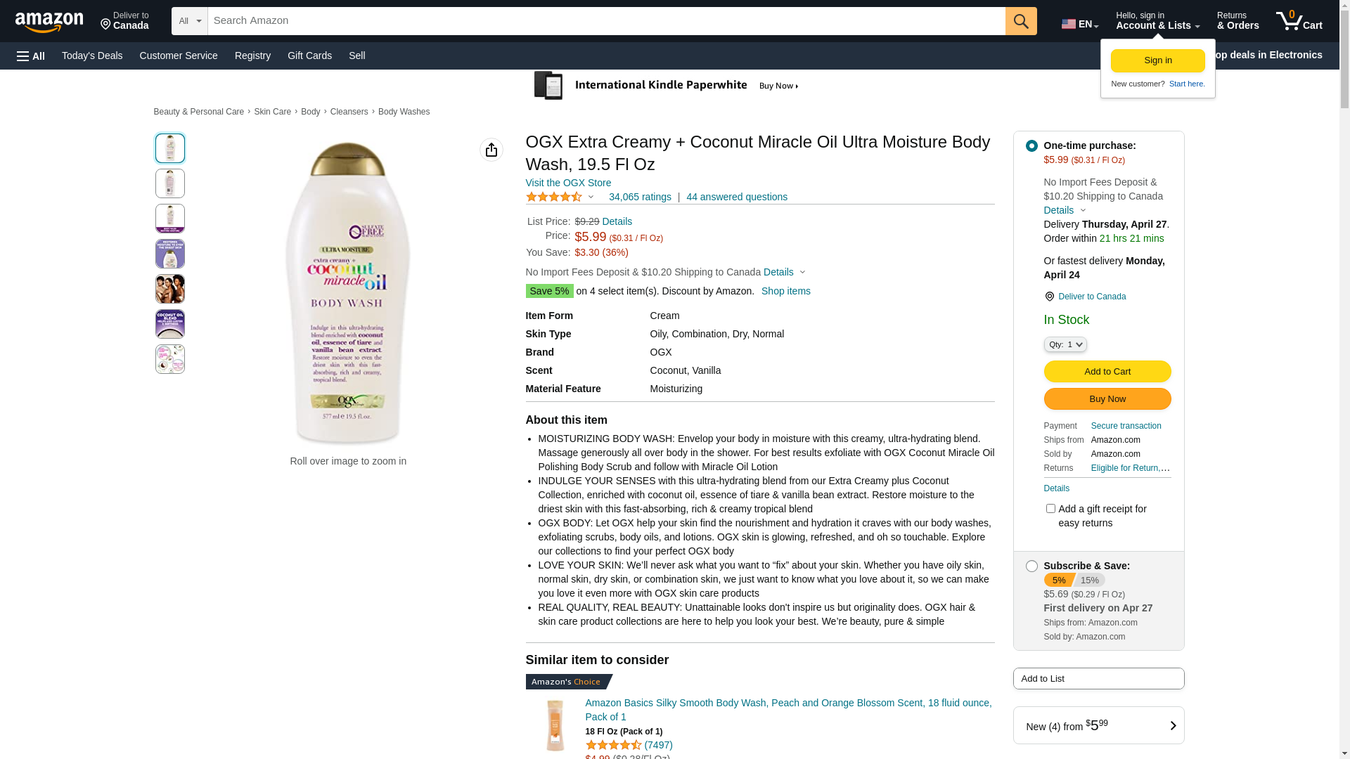 OGX Extra Creamy + Coconut Miracle Oil Ultra Moisture Body Wash, 19.5 Ounce: Maxedbuy.com