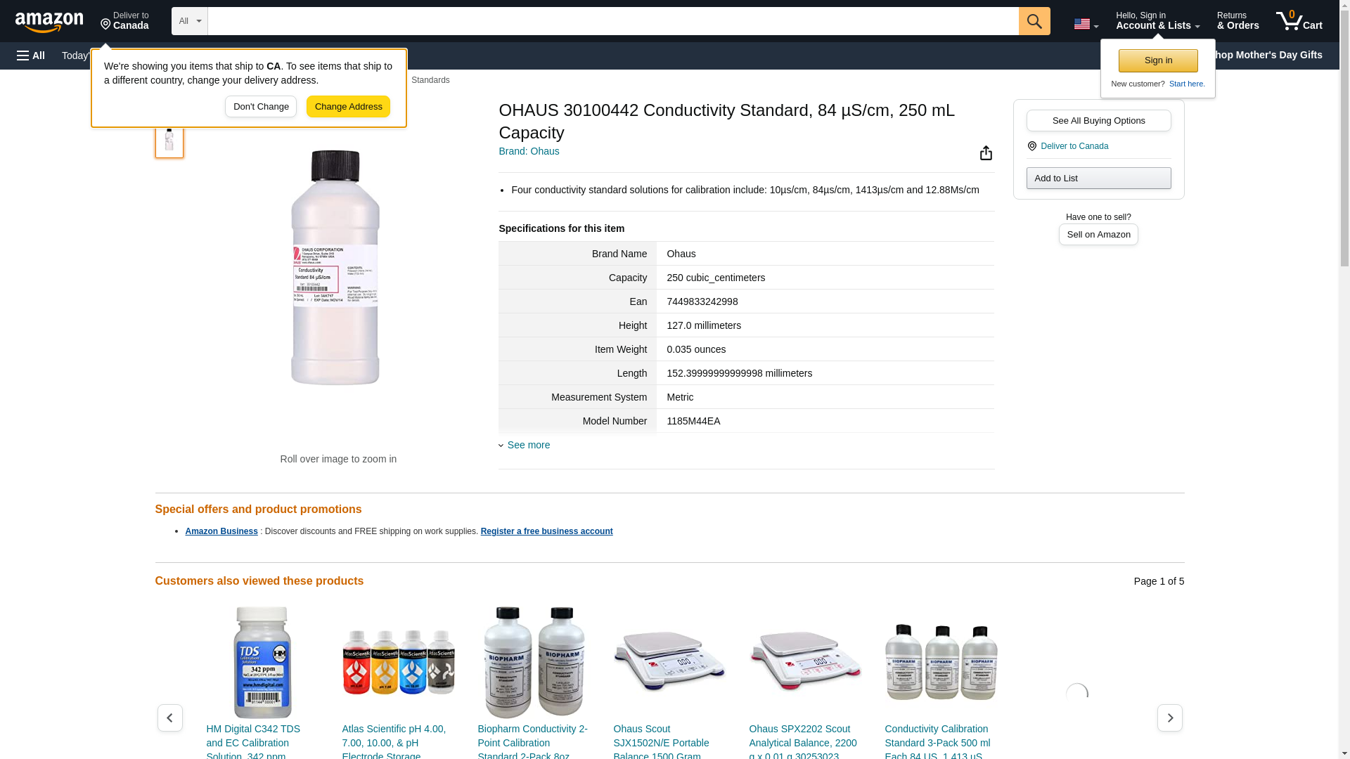 OHAUS 30100442 Conductivity Standard, 84 \xb5S/cm, 250 mL Capacity