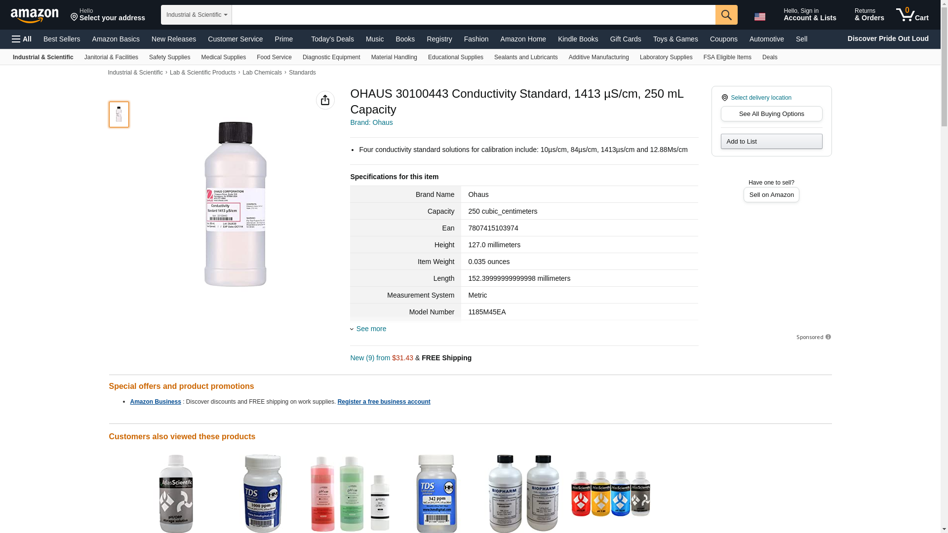 OHAUS 30100443 Conductivity Standard, 1413 \xb5S/cm, 250 mL Capacity