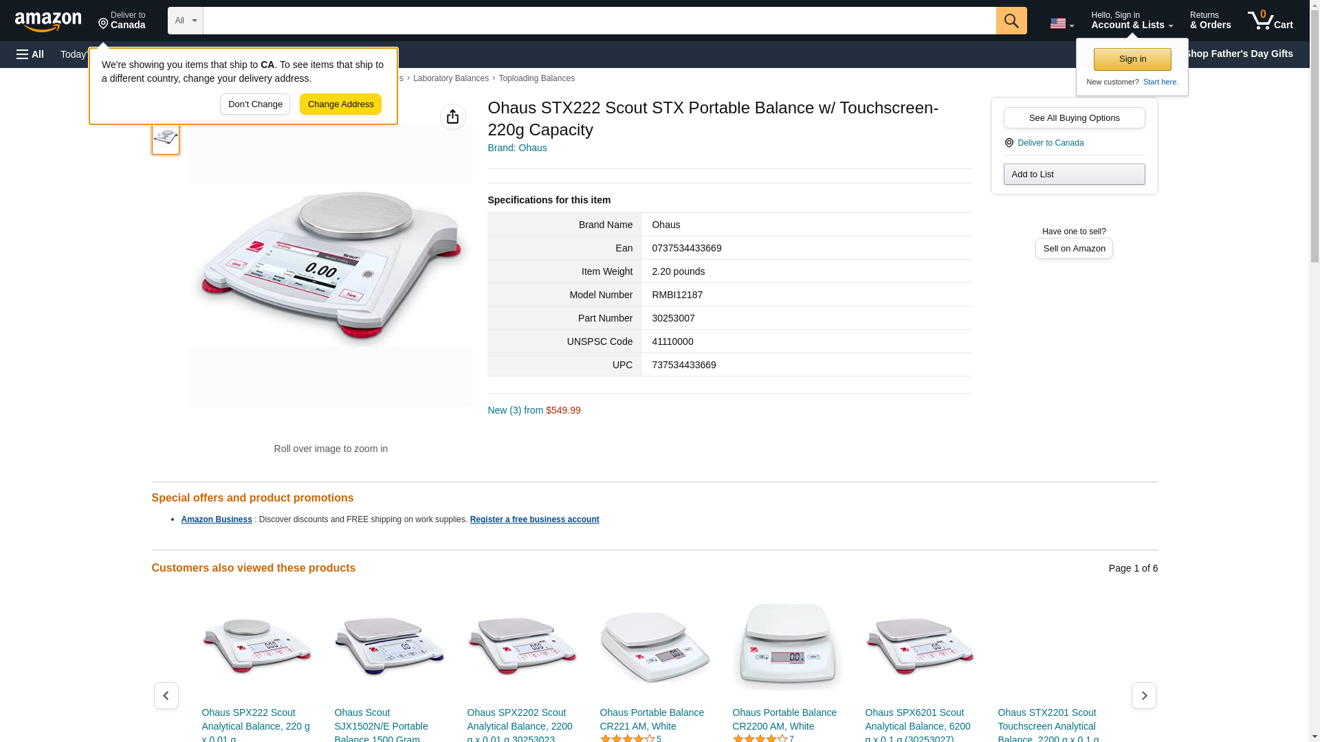 OHAUS 30253007 Model STX222 Scout Balance, 220 g Capacity x 0.01 g Readability