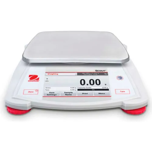 - Large, resilient color touchscreen allows for effortless operation of the Scout through its informative icon driven menu structure, guiding the user through every step of the weighing application