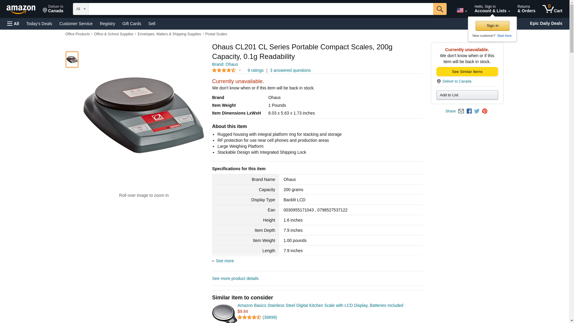 Ohaus CL201 Cl Handheld Balance, 200g x 0.1g (LCD)