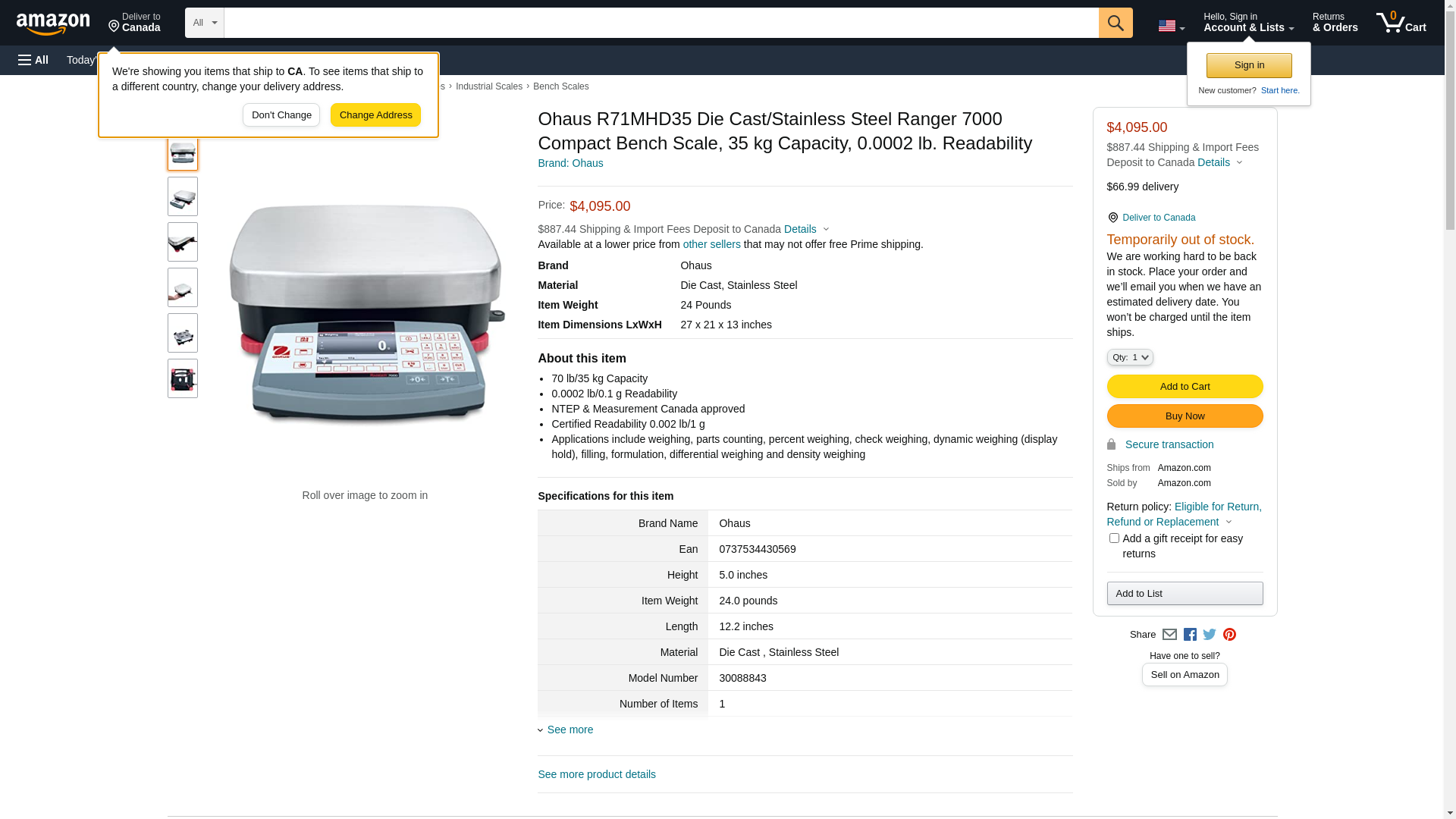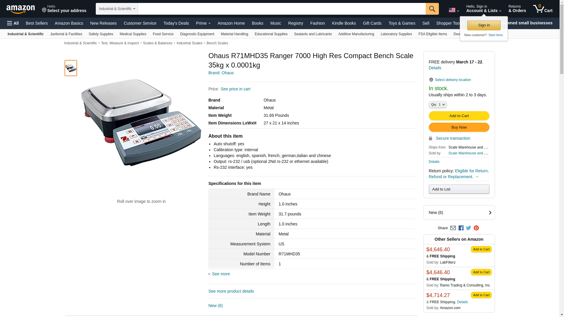 Ohaus, R71MHD35, Ranger 7000 Compact Bench Scale, 70 LB x 0.002 lb, NTEP