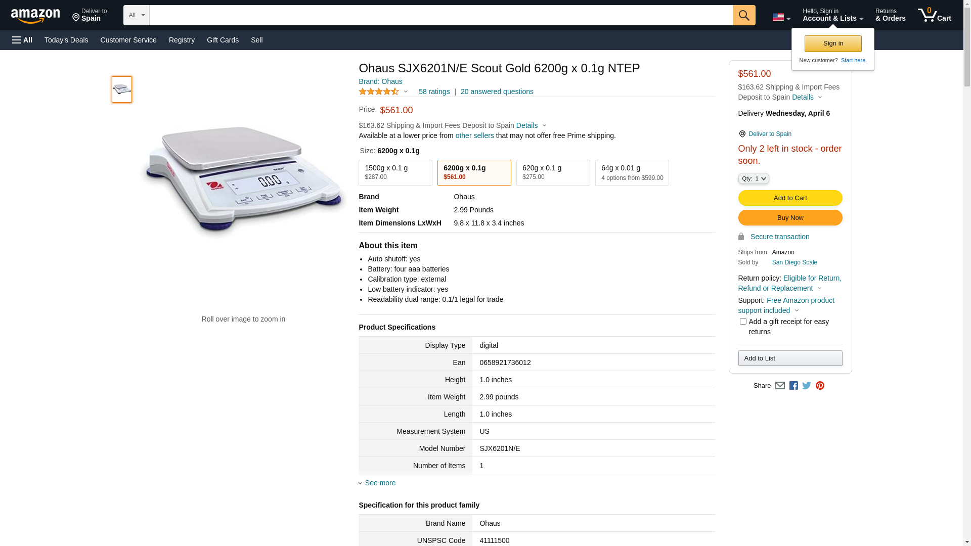 Ohaus SJX6201N/E Scout Gold 6200g x 0.1g NTEP