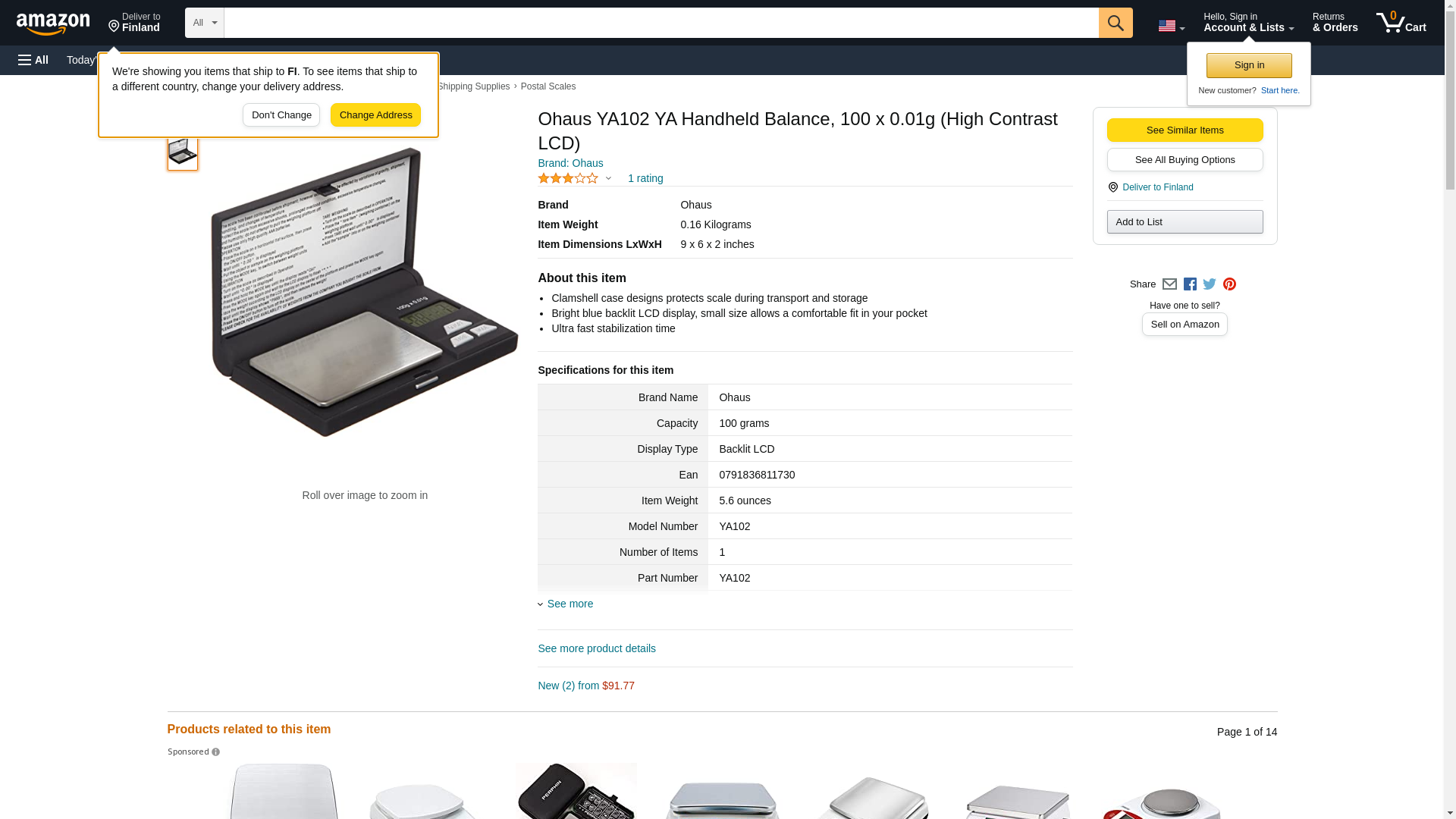 Ohaus YA102 YA Handheld Balance, 100 x 0.01g (High Contrast Lcd)