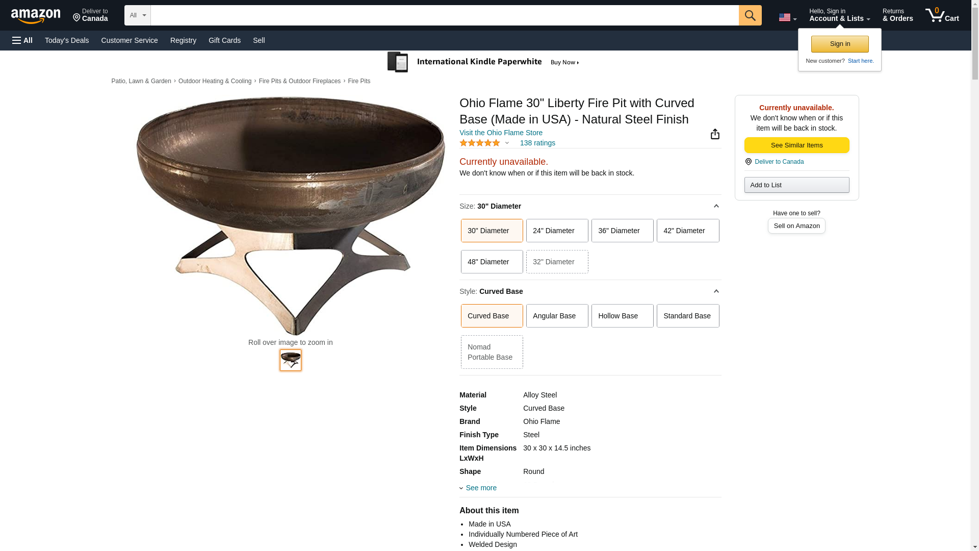 Ohio Flame OF30LTY-CB 30 dia. Liberty Natural Steel Curved Base Fire Pit