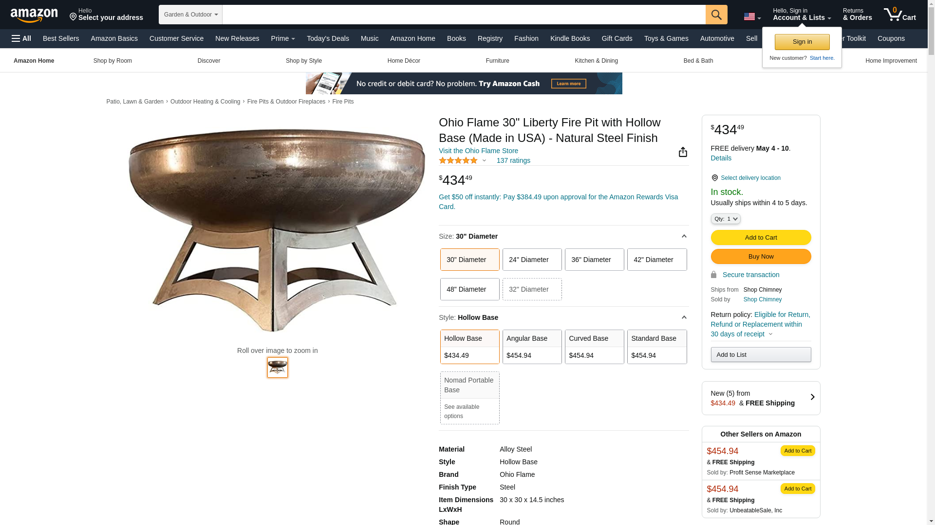 Ohio Flame OF30LTY-HB 30 dia. Liberty Natural Steel Hollow Base Fire Pit