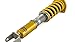 The Ohlins Road and Track suspension gives our customers a true racing experience, with their own cars, without losing comfort when commuting to work. Our unique Dual Flow Valve (DFV) technology allows you to quickly change the stiffness of the shock absorber. When arriving to the racetrack, just turn the golden knob clockwise on the damper to set it in race mode this action changes all four areas in the damper; low and high speed compression and rebound damping. With Ohlins Road and Track coilovers you will experience a car with blistering response times, improved bump absorption and a massive amount of grip to increase the safety when driving your car on the limit. The car will be easier to balance on the edge of what the tires can handle before losing grip. You will be much quicker on track. The DFV suspension prevents you from losing the racing line when hitting bumps or curbs. The DFV components within react quickly and keeps you in control of the car and in contact with the track. When driving to and from the track, just set the dampers in road mode for a more relaxed and comfortable drive, still with more grip and quicker response time than ever before.