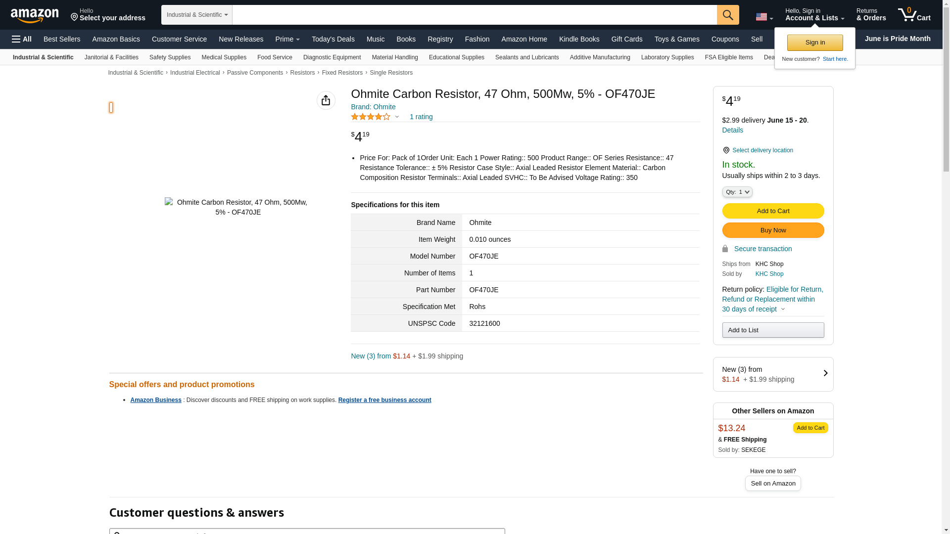 ![]() Mouser | 588-OF470JE | 1 | 2284 | 1 | 1 @ $0.97, 10 @ $0.84, 100 @ $0.61, 1000 @ $0.41, 10000 @ $0.41 |