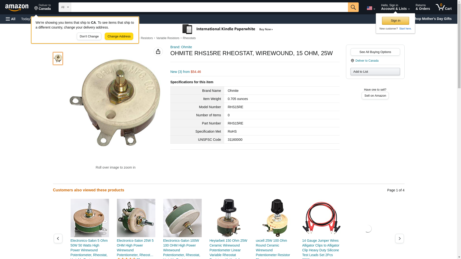 OHMITE - RHS15RE - RHEOSTAT; WIREWOUND; 15 OHM; 25W