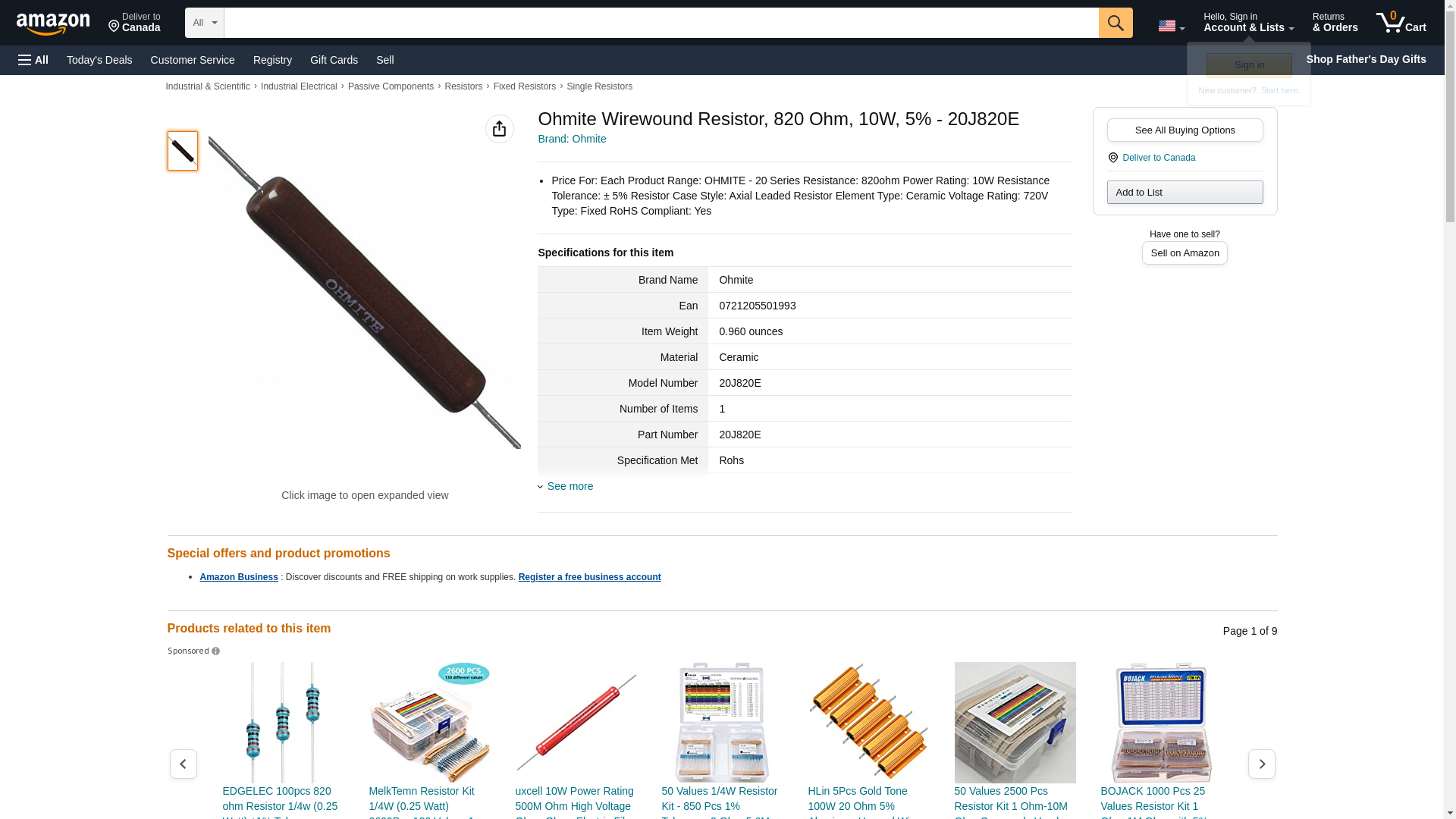- Price For: Each Product Range: OHMITE - 20 Series Resistance: 820ohm Power Rating: 10W Resistance Tolerance: ± 5% Resistor Case Style: Axial Leaded Resistor Element Type: Ceramic Voltage Rating: 720V Type: Fixed RoHS Compliant: Yes