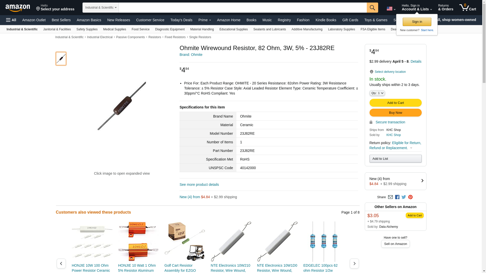 Ohmite 23J82RE Resistor, WIREWOUND, 82 OHM, 3W, 5%