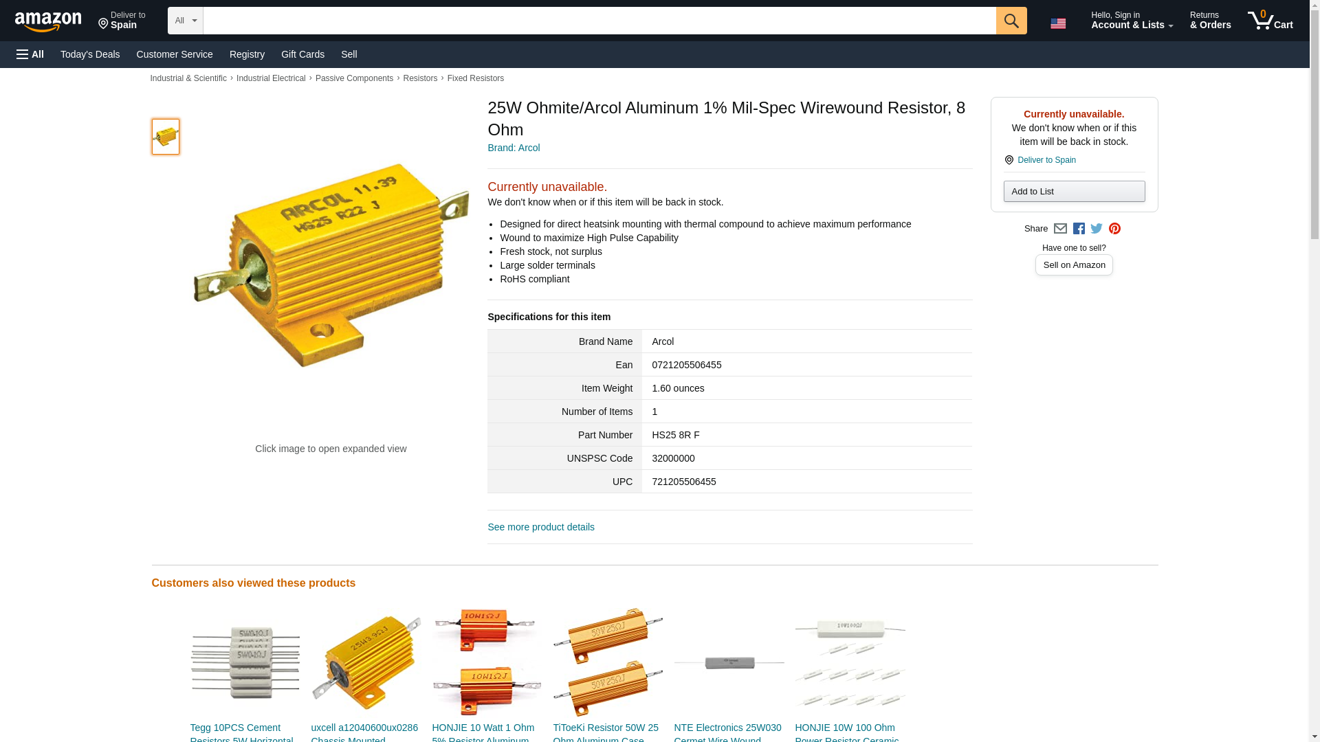 25W Ohmite/Arcol Aluminum 1% Mil-Spec Wirewound Resistor, 8 Ohm