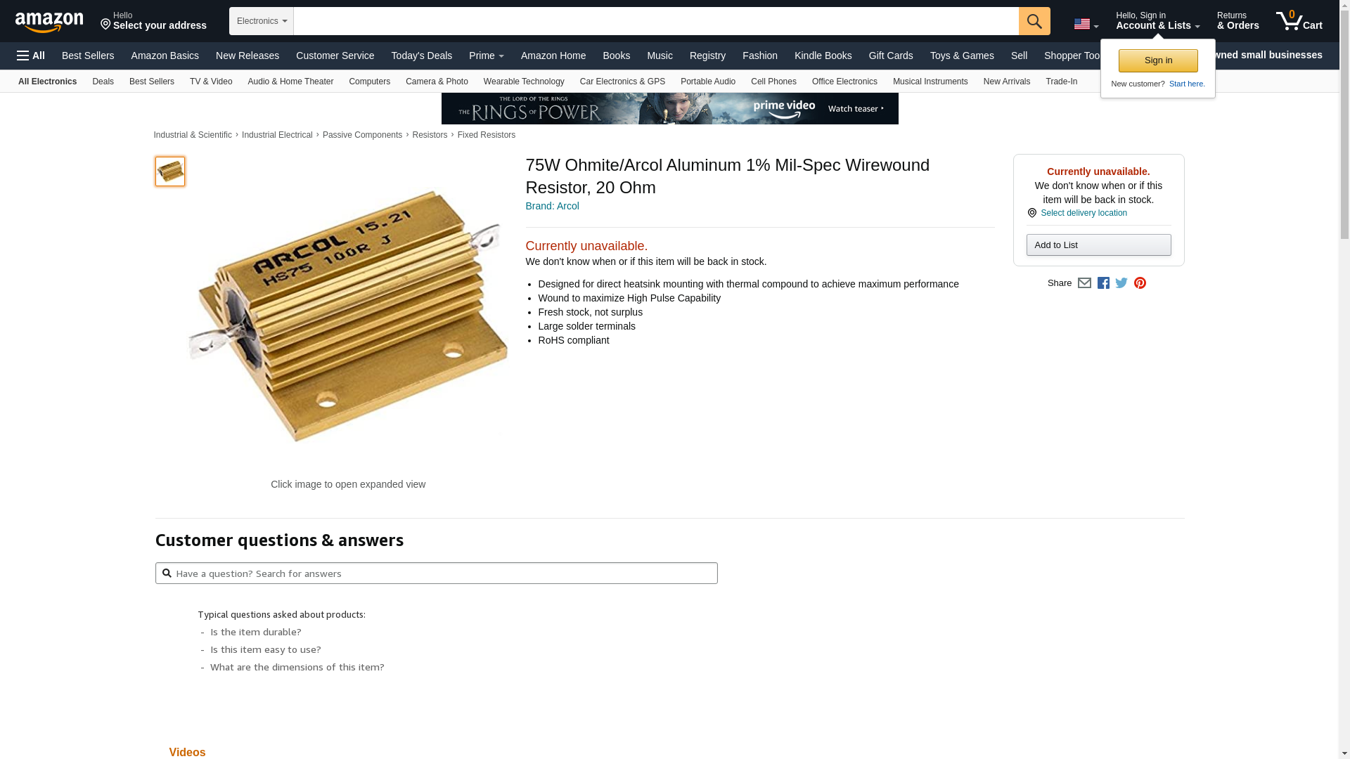 | Digi-Key | HS75 20R F-ND | 60 | 60 @ $7.07 | ||