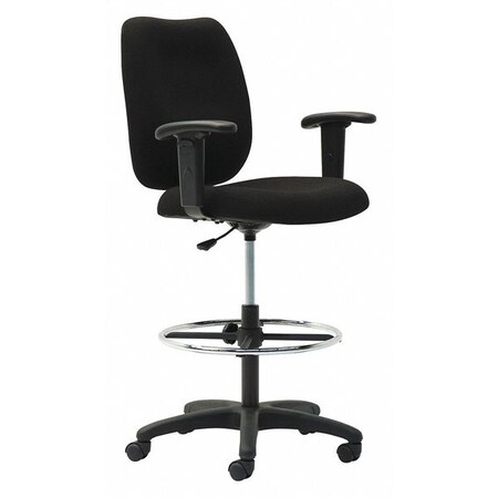 Upholstered Mid-Back Stool, Height Adjustable T-Bar Arms, Black