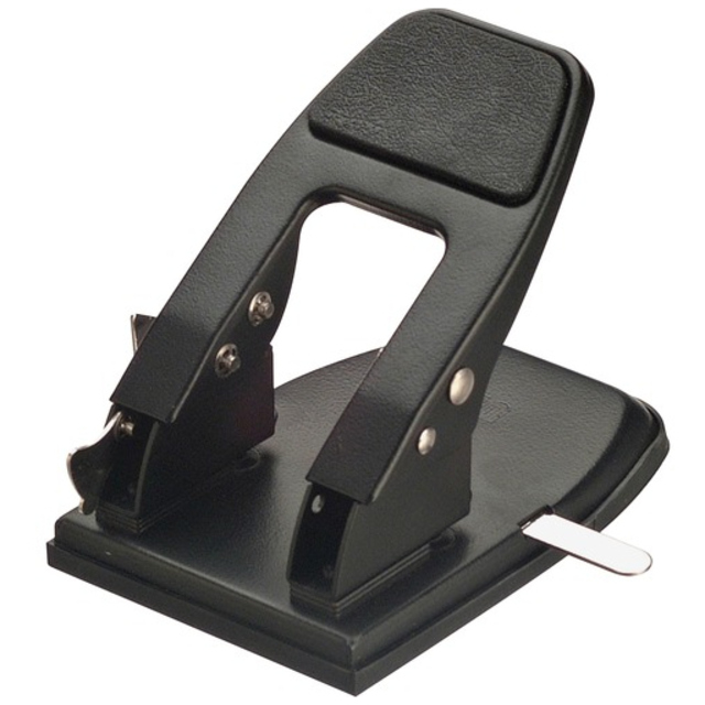 Ergonomic 2H Punch, 1/4" Holes, Adj. Guide, 50 Sht Cap., BK PK