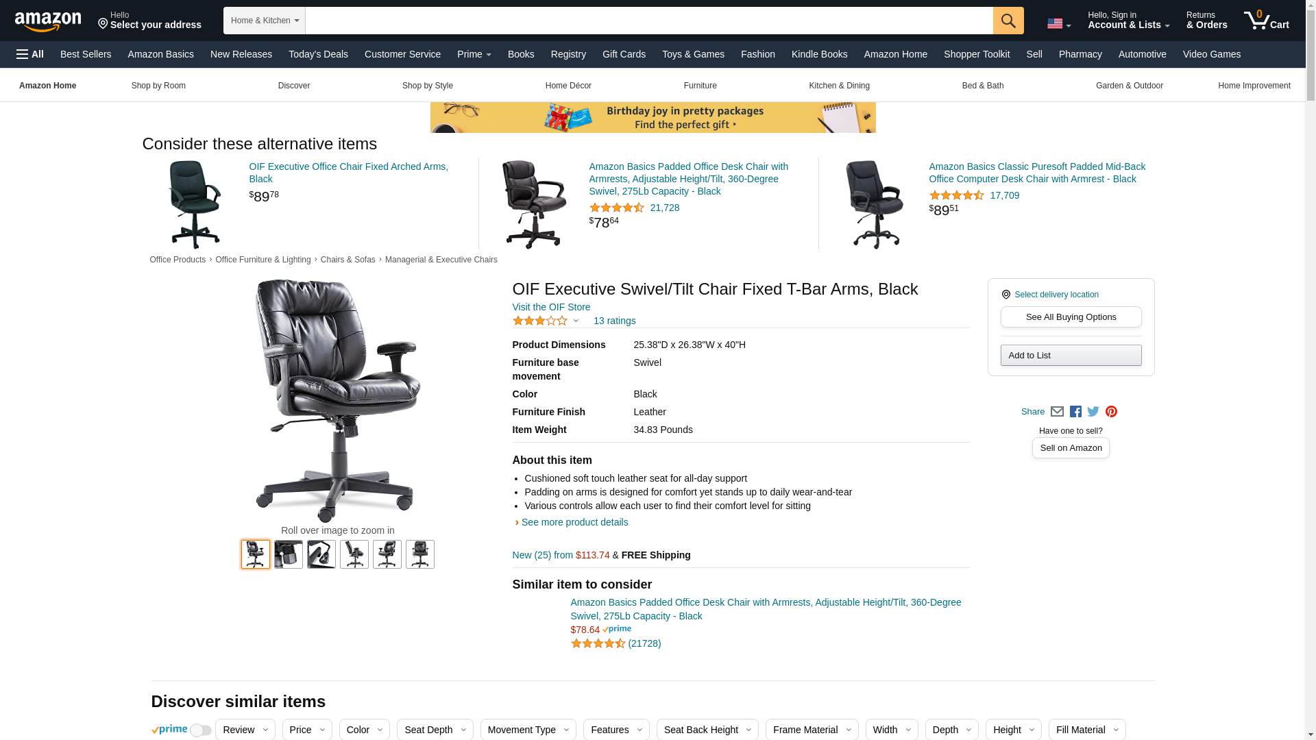 OIF Executive Swivel/Tilt Chair Fixed T-Bar Arms, Black