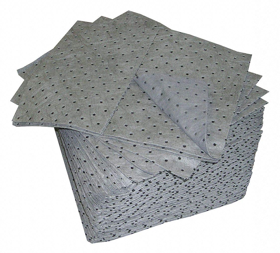 Product Type Sorbent Pad, Fluids Absorbed Universal, For Use With Chemical or Metal Type Universal, Size 15 in x 19 in, Volume Absorbed Per Pad 0.22 gal, Volume Absorbed per Pkg. 11 gal, Color/Pattern Gray, Material Polypropylene, Number of Layers 1-ply, Perforated Yes, Perforated Size 9 1/2 in x 15 in, Package Quantity 50