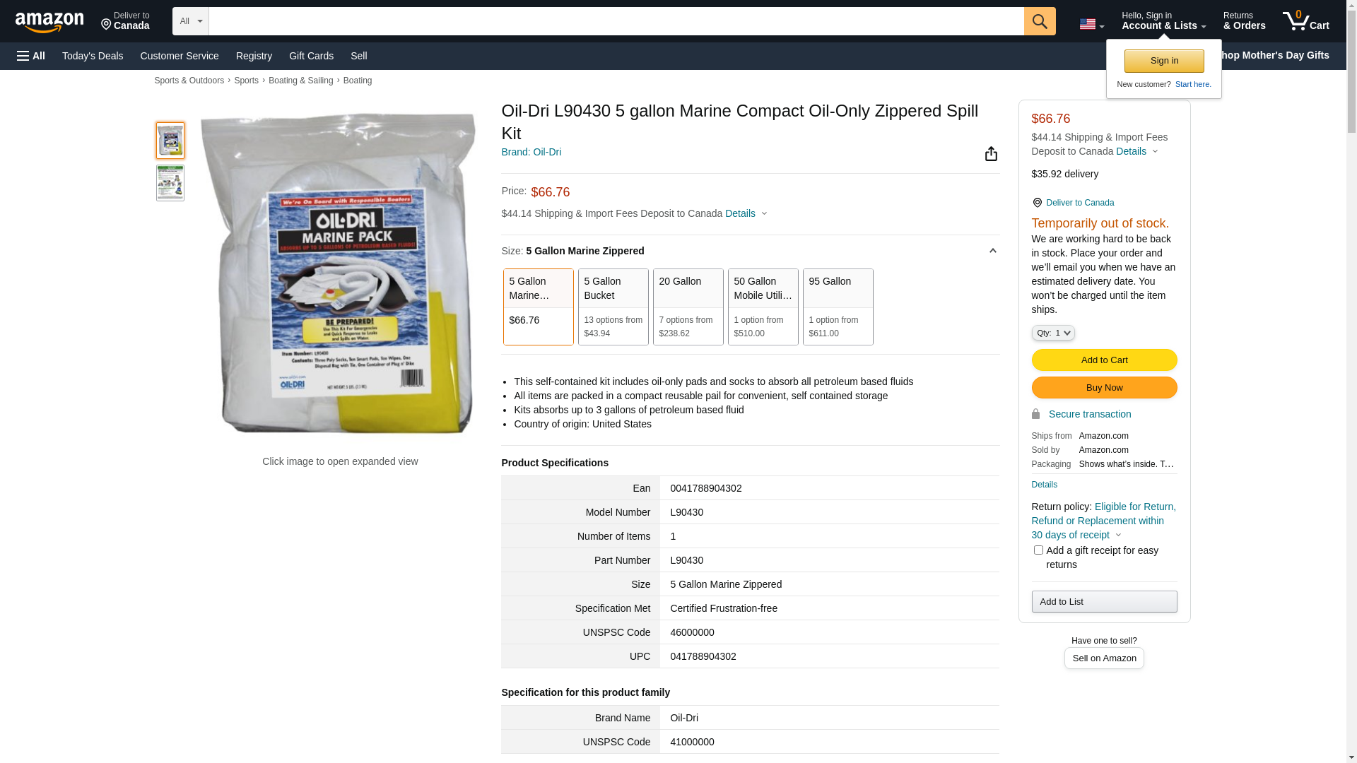 Oil-Dri® Oil Only Zippered Marine Spill Kit, 5 Gallon Capacity
