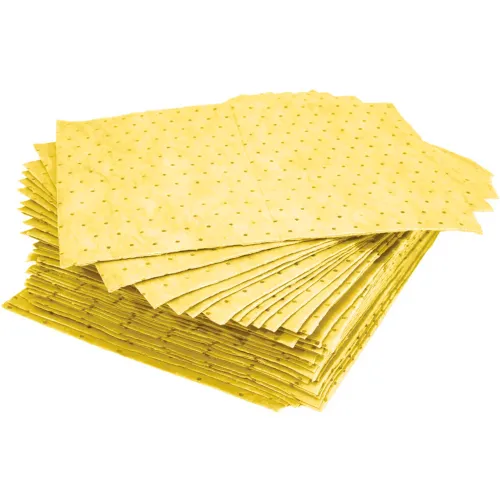 | Feature | These yellow, mid-weight pads are designed to absorb acids and bases without falling apart |