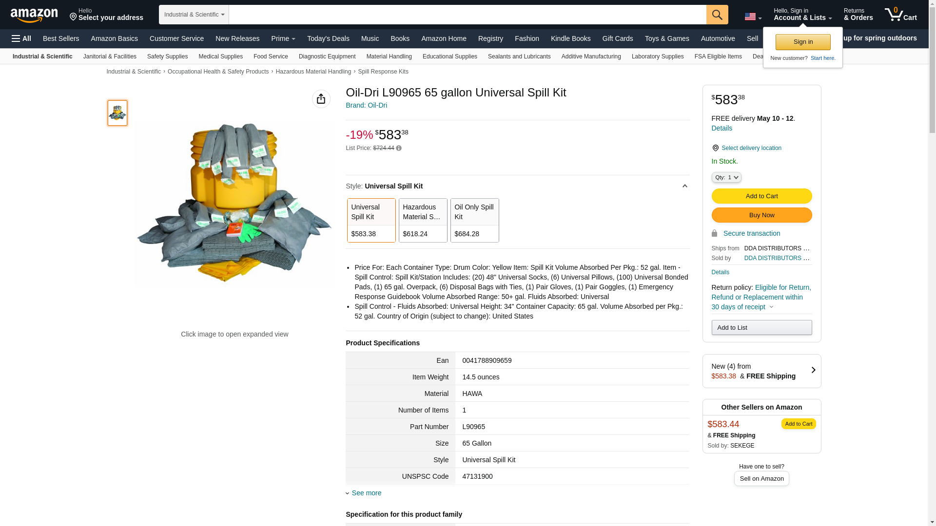 Oil-Dri L90965 65 gallon Universal Spill Kit