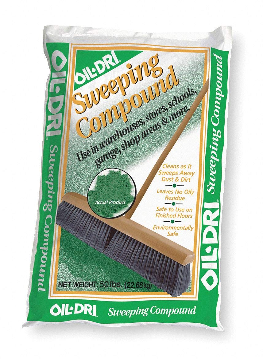Sweeping Compound, Base Material Sorbent, Wood Pulp, Color Green, Container Type Bag, For Floor Type Asphalt, Brick, Ceramic, Concrete, Granite, Laminate, Linoleum, Marble, Porcelain, Rubber, Slate, Terrazzo, Travertine, Vinyl, Wood, Standards USDA Certified, Biodegradable Yes