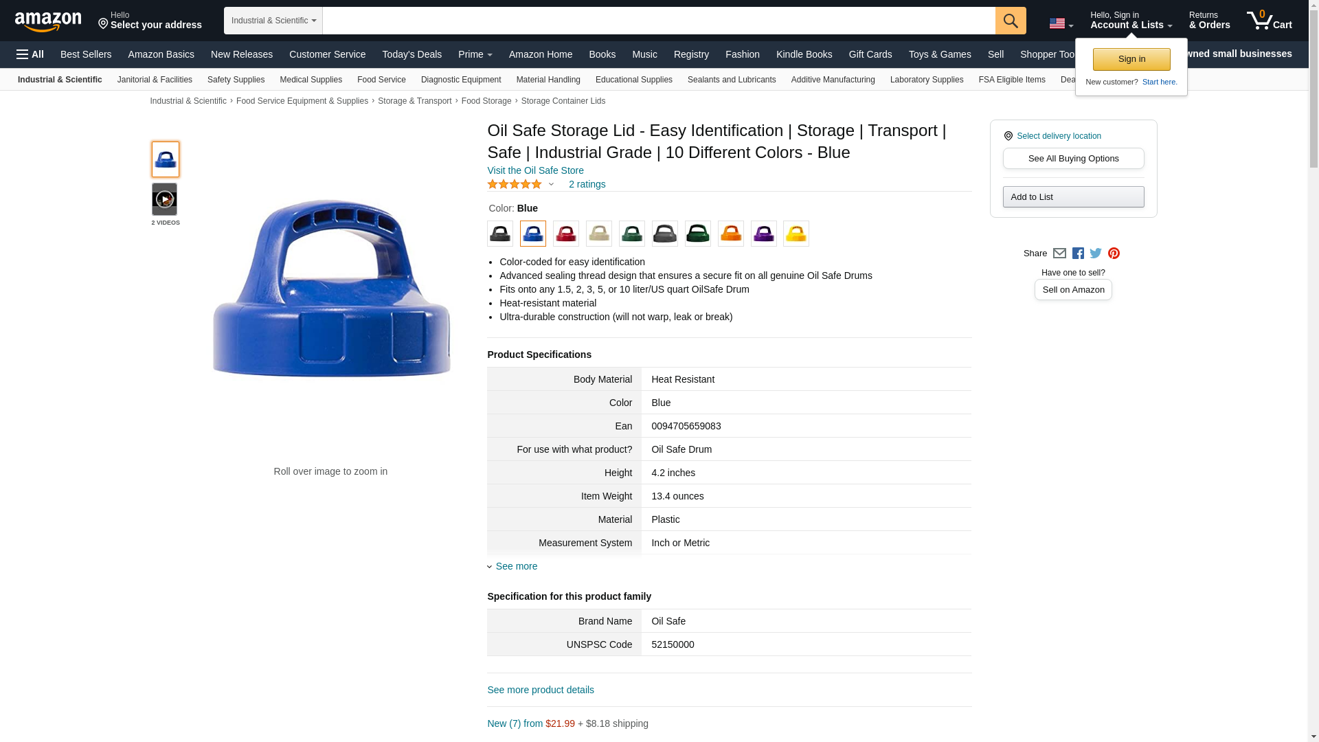 Oil Safe Storage Lid - Easy Identification | Storage | Transport | Safe | Industrial Grade | 10 Different Colors - Blue