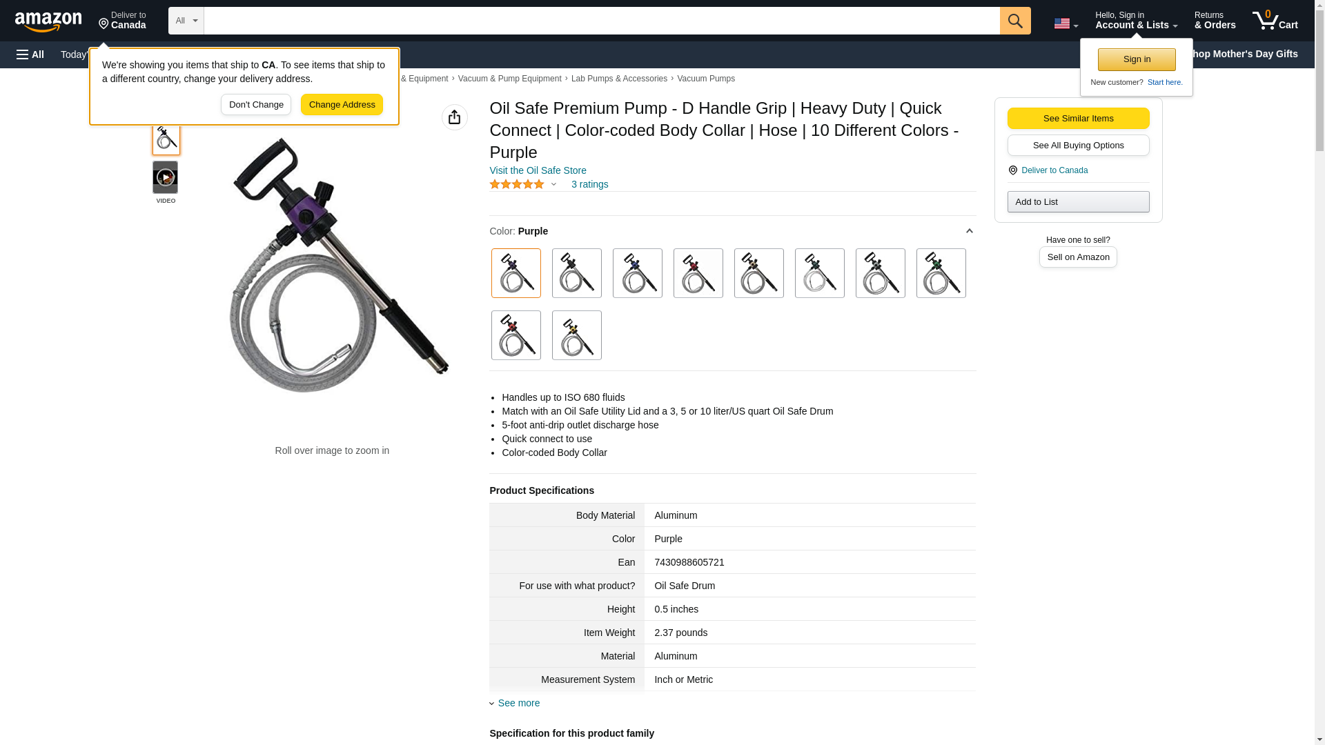 Oil Safe Premium Pump - D Handle Grip | Heavy Duty | Quick Connect | Color-coded Body Collar | Hose | 10 Different Colors - Purple