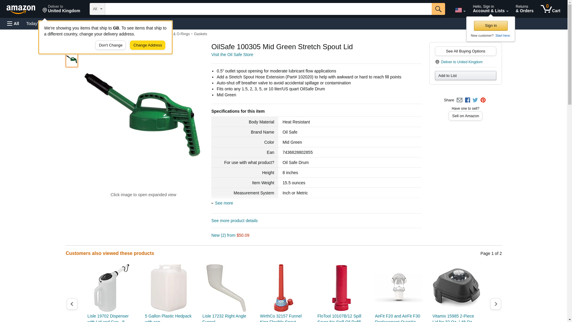 OilSafe 100305 Mid Green Stretch Spout Lid