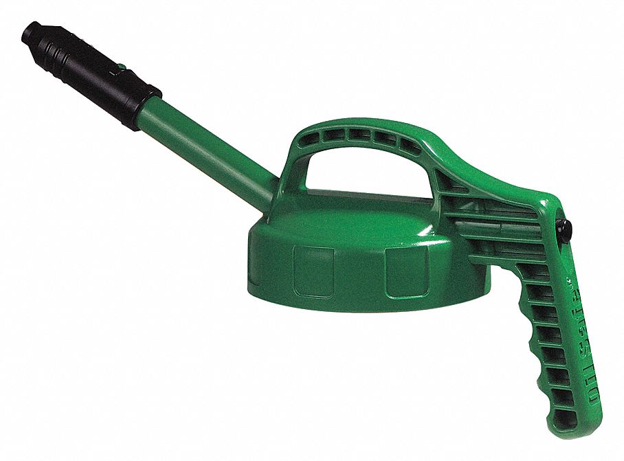 OilSafe's Stretch Spout Lid is designed for hard to reach areas and applications where precise pouring of lubricants is required. With a 0.5" opening and longer spout, the Stretch Spout Lid is ideal for lower viscosity oils (less than ISO 220). Made with state-of-the-art materials, the Stretch Spout Lid has an advanced sealing thread design, that ensures a secure fit on all OilSafe Drums. Match lid with an OilSafe color-coded label for easy, comprehensive fluid identification. This lid has a 0.5" outlet spout opening for moderate lubricant flow applications. Add a Stretch Spout Hose Extension to help with awkward or hard to reach fill points. Large handle for ease of carrying. Auto-shutoff breather valve to avoid accidental spillage or contamination. Made with industrial-grade, heat-resistant materials. Ultra-durable construction will not warp, leak, or break. -Available in OilSafe's 10 standard colors. -Weight: .97 lb". DO NOT USE ON FUELS.
