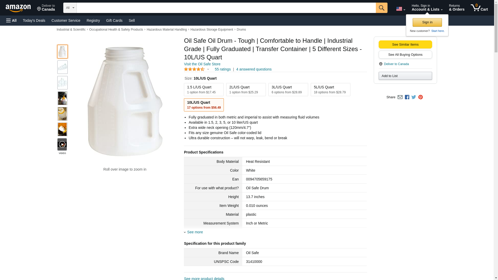 Oil Safe 101010 10.0 Quart/Liter Drum