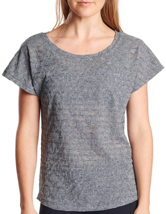 The easy-to-wear women's Oiselle Heather Grid Dolman Top is made from a unique jacquard mesh, blending beautiful design with technical function for running, yoga, and everyday wear.
