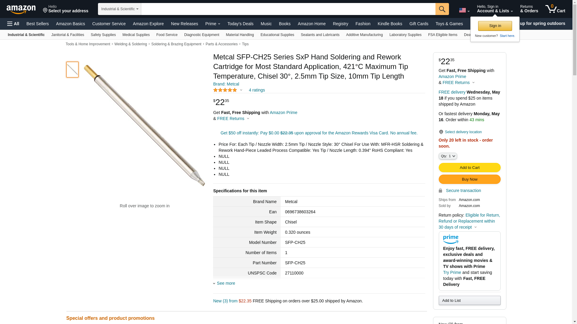 | Feature | <b>Price For:</b> Each <b> Tip / Nozzle Width:</b> 2.5mm <b> Tip / Nozzle Style:</b> 30\xb0 Chisel <b> For Use With:</b> MFR-HSR Soldering & Rework Hand-Piece <b> Leaded Process Compatible:</b> Yes <b> Tip / Nozzle Length:</b> 0.394" <b>RoHS Compliant:</b> Yes |