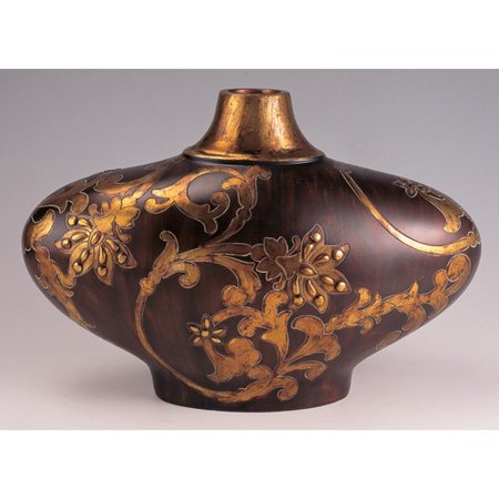 OKLG1356 <br /> <b>Features</b> <br /> <ul style="" margin:="" 0;''=""> <li>Traditional golden flower accented flower vase</li> <li>Material: Polyresin</li> <li>High quality and stylish</li> <li>Arie collection</li> <li>Product Type: Table vase</li> <li>Shape: Abstract</li> <li>Color: Mahogany/Gold</li> <li>Distressed: Yes</li> </ul> <br /> <b>Dimensions</b> <br /> <ul style="" margin:="" 0;''=""> <li>Overall Height - Top to Bottom: 10.75''</li> <li>Overall Width - Side to Side: 15.5''</li> <li>Overall Depth - Front to Back: 6.75''</li> <li>Overall Product Weight: 3 lbs</li> </ul>