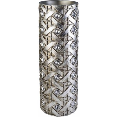 <br /> <b>Ok Lighting 18"H Just Dazzle Deco Vase, Silver:</b> <ul> <li>18.5"h Silver dazzle vase</li> <li>Floral holes 1.5"x 2.25"</li> <li>Silver bejeweled studs</li> <li>Made of Polyresin</li> <li>90-day limited warranty</li> </ul>