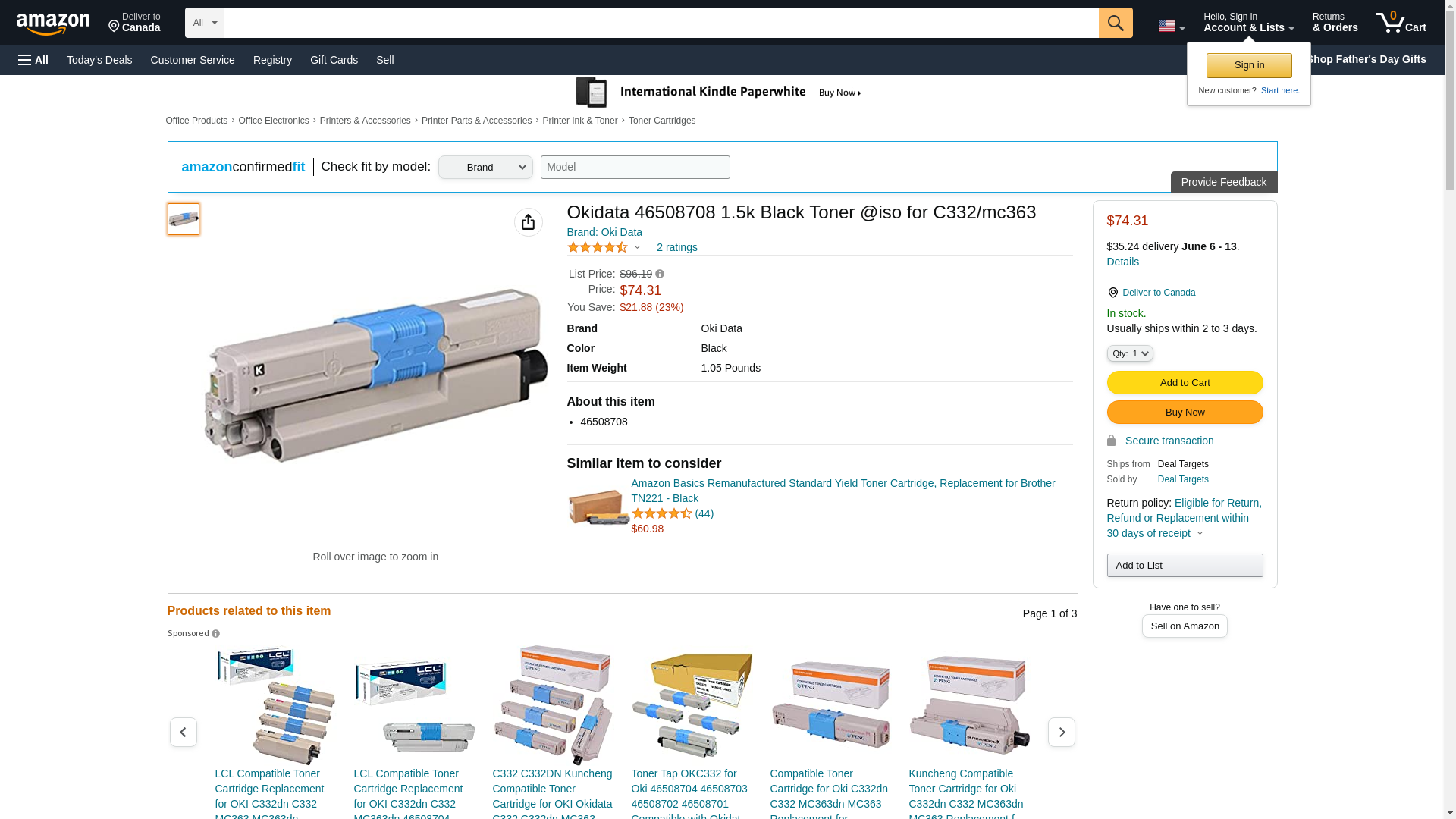 Okidata 46508708 1.5k Black Toner @iso for C332/mc363