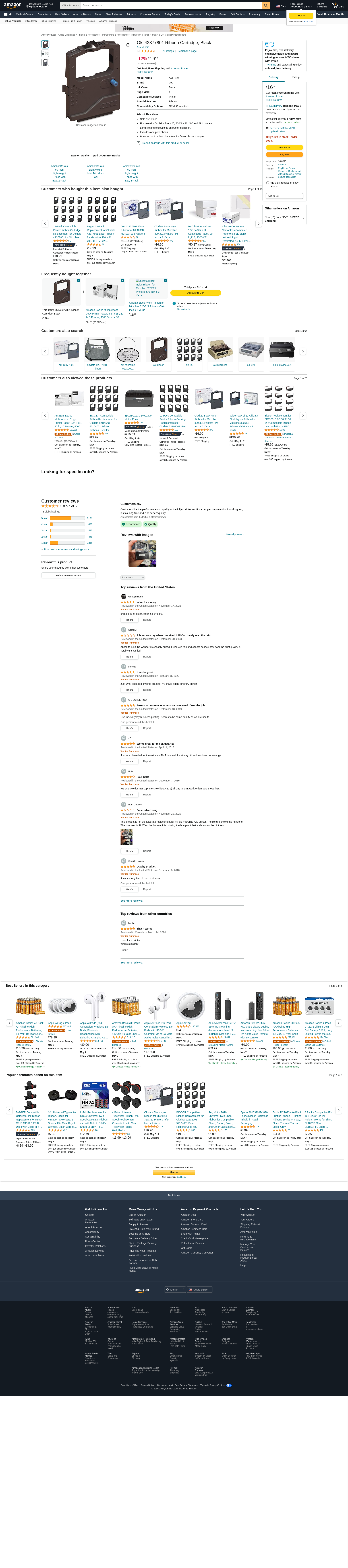 OKI 42377801 Microline 400 420 421 490 491 Printers Ribbon Cartridge (Black)