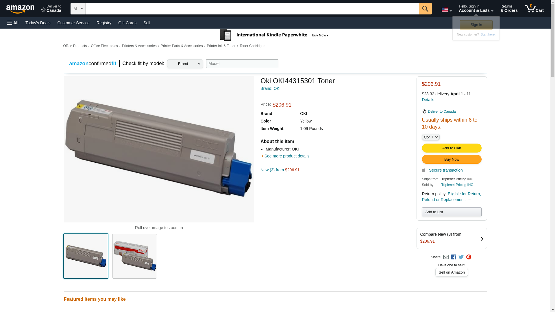 - Okidata 44315301 Toner Cartridge OEM Yellow