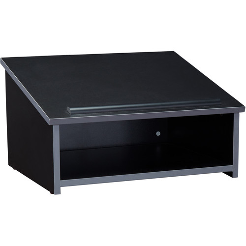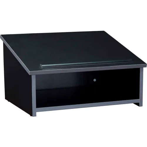 The versatile Tabletop lectern functions great on its own or in conjunction with the #112 floor lectern base (sold separately). Its 3/4" thick structure is comprised of stain and scratch-resistant thermofused melamine laminate secured to a particleboard core. Features a convenient paper/book stop below its ample reading surface. Ships ready for easy assembly. Functions On Its Own Or In Conjunction with Floor Lectern Base. Features a Paper/Book Stop. High Pressure Thermal-Fused Laminate on a PB Core. 10 Year Warranty