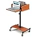 LSS-CH Finish: Cherry Features: -Black powder coated steel frame. -Slide out laptop shelf. -Adjustable height. -Sleek rounded base panel melamine wrap on MDF core. -Lectern doubles as projector stand. -Reading surface can be set at three angles for presentation needs. Product Type: -Speaker stand. Style: -Modern. Primary Material: -Wood. Storage Included: -Yes. Wheels Included: -Yes. Dimensions: -3" Locking casters. -Reading surface: 13" H x 19" W. Adjustable Height: -Yes. Overall Width - Side to Side: -24". Overall Depth - Front to Back: -24". Overall Product Weight: -40 lbs.