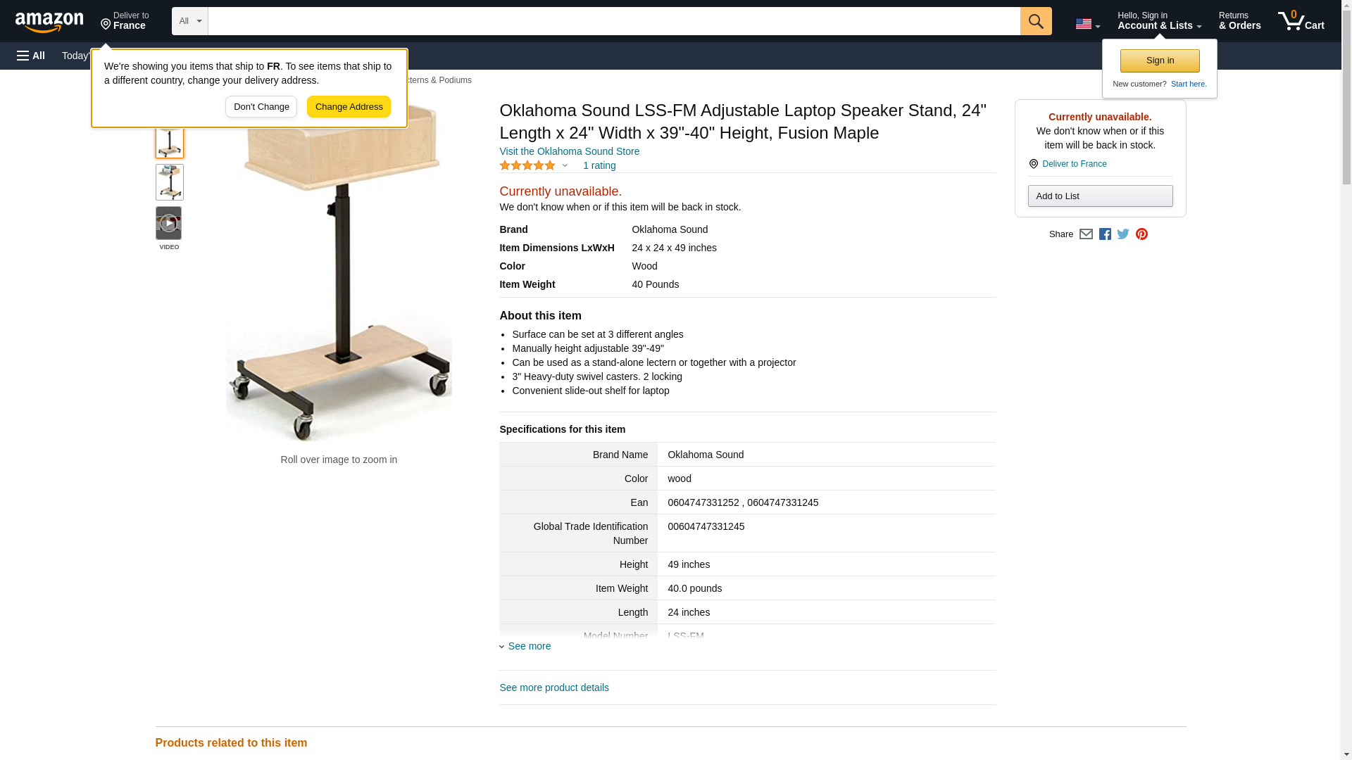 Oklahoma Sound LSS-FM Adjustable Laptop Speaker Stand, 24" Length x 24" Width x 39"-40" Height, Fusion Maple