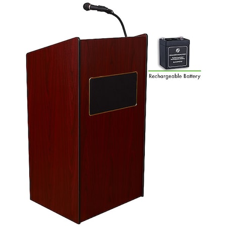 Oklahoma Sound M6010-MY Mobile Aristocrat Floor Sound Lectern with Rechargeable Battery, Mahogany,for Audiences Up to 2500, 50-Watt Multimedia Amplifier, Two Built-in 8" Speakers