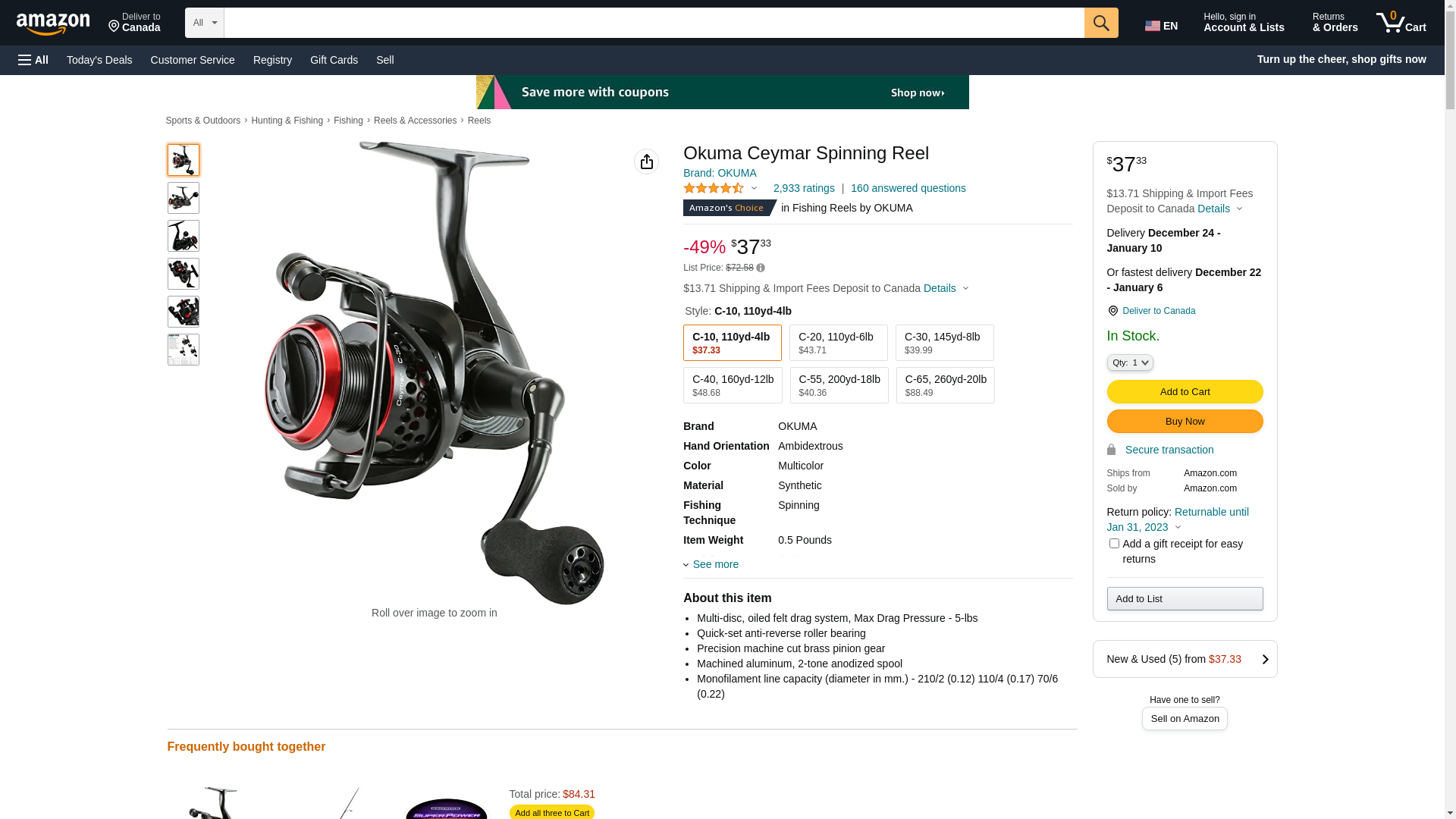 OKUMA C-10 Ceymar Fishing Spinning Reel 5.0:1 Light Weight Spool 7 Bearing 49653