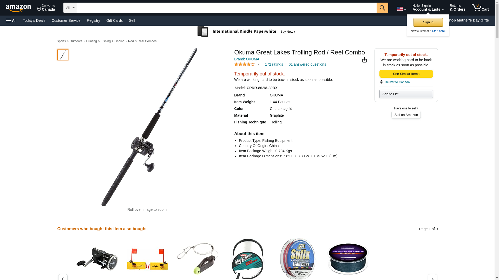 Okuma Salmon Trolling Rod/Reel Combo (10-Feet 2-Piece Rod Magda 30 Line Counter)